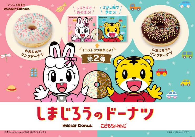 株式会社ベネッセコーポレーションの幼児の教育・成長支援ブランド「こどもちゃれんじ」は、2021年に引き続き、株式会社ダスキンが運営するミスタードーナツとコラボレーションします。全国のミスタードーナツのショップで「しまじろうのドーナツ」「ミスド こどもちゃれんじ キッズセット」を数量限定で販売!2022年は販売期間を拡大し、3月25日からの第1弾に加え、4月27日からの第2弾を実施!