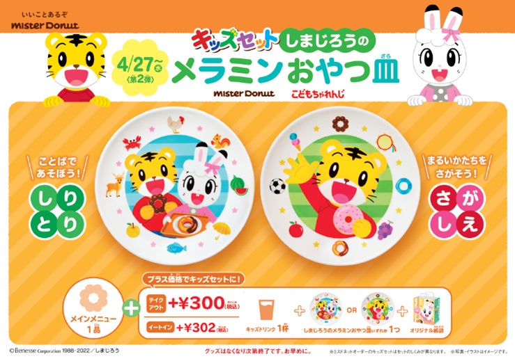 「こどもちゃれんじ」は、ミスタードーナツとコラボレーションし、全国のミスタードーナツのショップで「しまじろうのドーナツ」「ミスド こどもちゃれんじ キッズセット」を数量限定で販売!2022年は販売期間を拡大し、3月25日からの第1弾つよいこグラスセットに加え、4月27日からの第2弾メラミンおやつ皿セットが発売されます!商品発売日、ネット予約方法、価格、種類などの情報を紹介します。