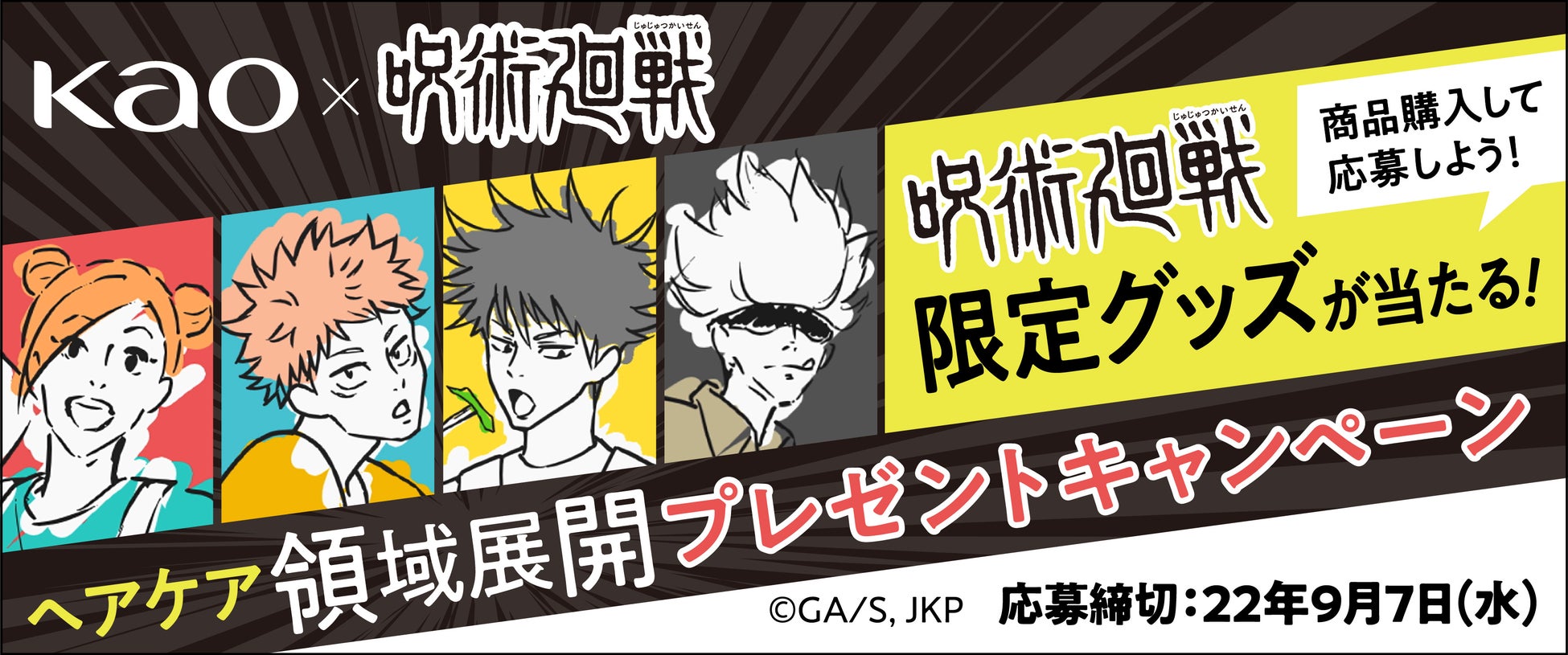 花王株式会社は、大人気漫画を原作としたTVアニメ『呪術廻戦』とコラボした「ヘアケア領域展開プレゼントキャンペーン」を2022年7月4日(月)より実施します。