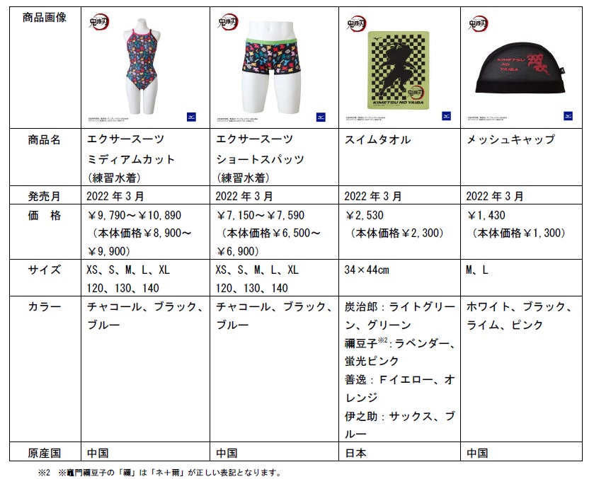 ミズノはアニメ「鬼滅の刃」のキャラクターがデザインされた野球、水泳、卓球の11アイテムを、ミズノ直営店、ミズノ公式オンラインショップ、一部のミズノ品取扱店で3月16日から順次販売※1予定です。コラボグッズの種類、販売情報、価格などの情報を紹介します。
