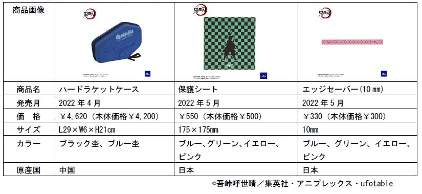 今回発売するアイテムは、野球のミニグラブストラップや水泳用水着、卓球のラケットケースなどで、キャラクターのシルエットと特徴的な紋様柄がデザインされています。今後、「鬼滅の刃」のキャラクターがデザインされた商品は、バドミントン、ソフトテニス、ゴルフでも順次展開予定です。