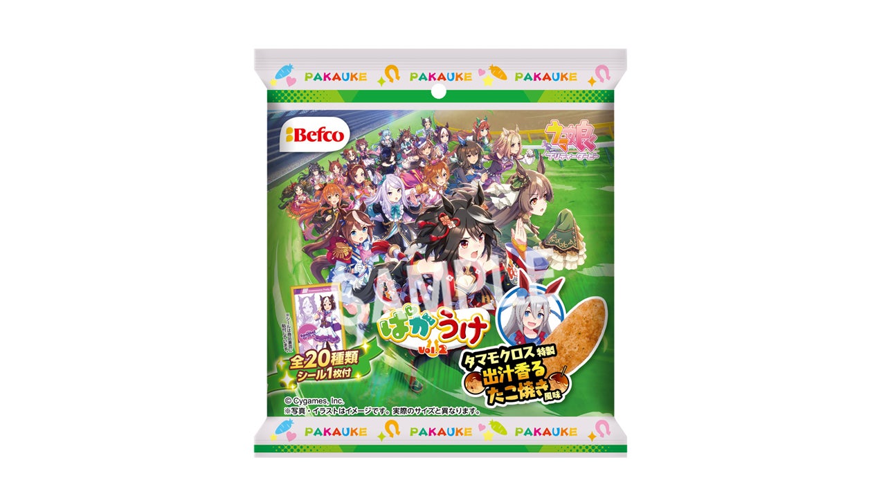 “ばかうけ”“星たべよ”“瀬戸しお”など米菓を製造販売する㈱栗山米菓は、「ウマ娘 プリティダービー」と「ばかうけ」のコラボ商品として、『ウマ娘プリティダービー ぱかうけ2(タマモクロス特製 出汁香るたこ焼き風味)』を期間限定で発売!2022年8月22日(月)より全国のコンビニおよび菓子売場等にて発売開始。