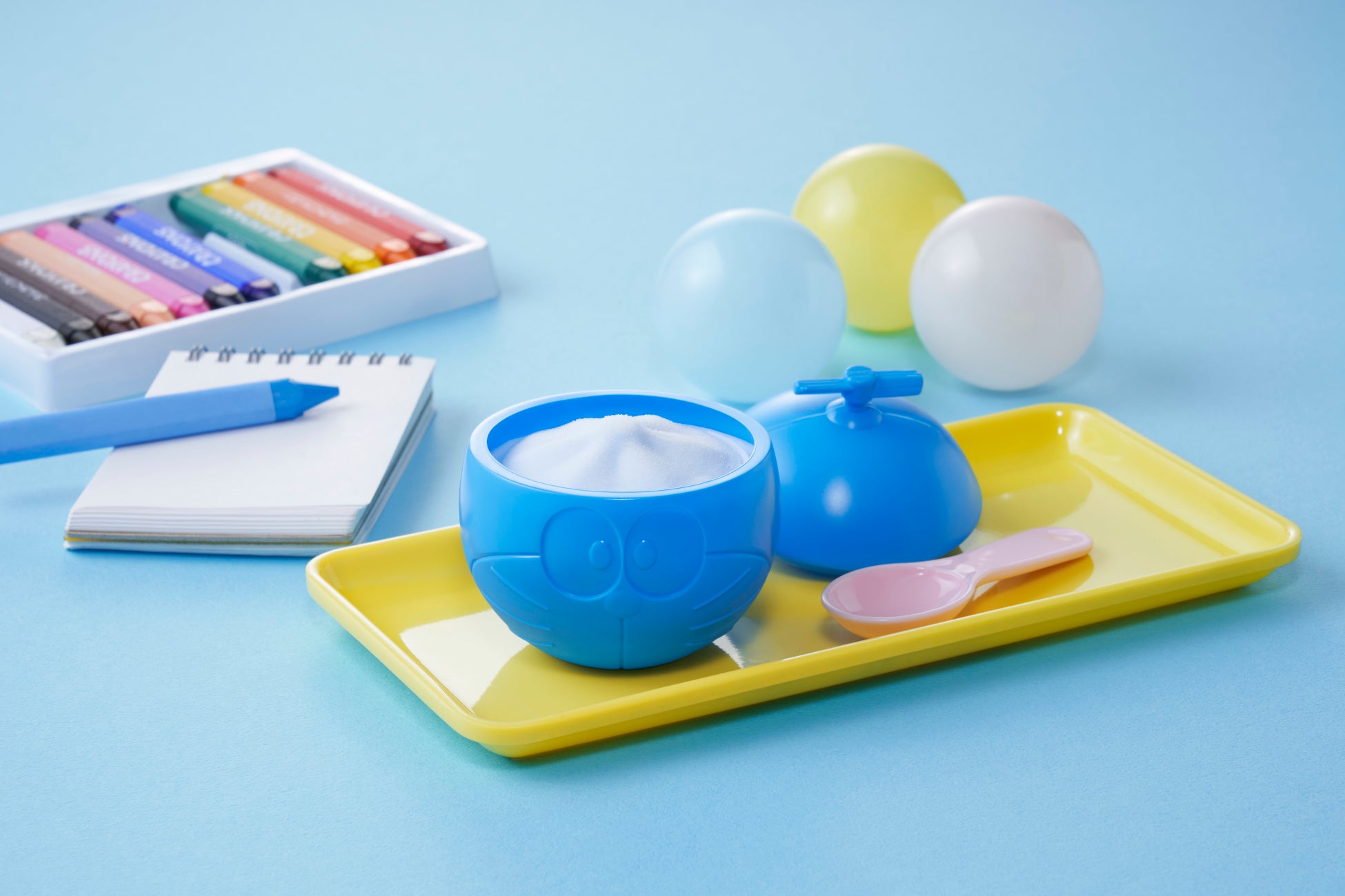 レモン果汁を配合することで、爽やかな酸味がありながら、子どもが好きな甘い駄菓子のソーダ味のアイスに仕上っています。冷凍下でも柔らかく、子どもが食べやすいアイスです。 - 食べた後も楽しめる!『ドラえもん』の容器