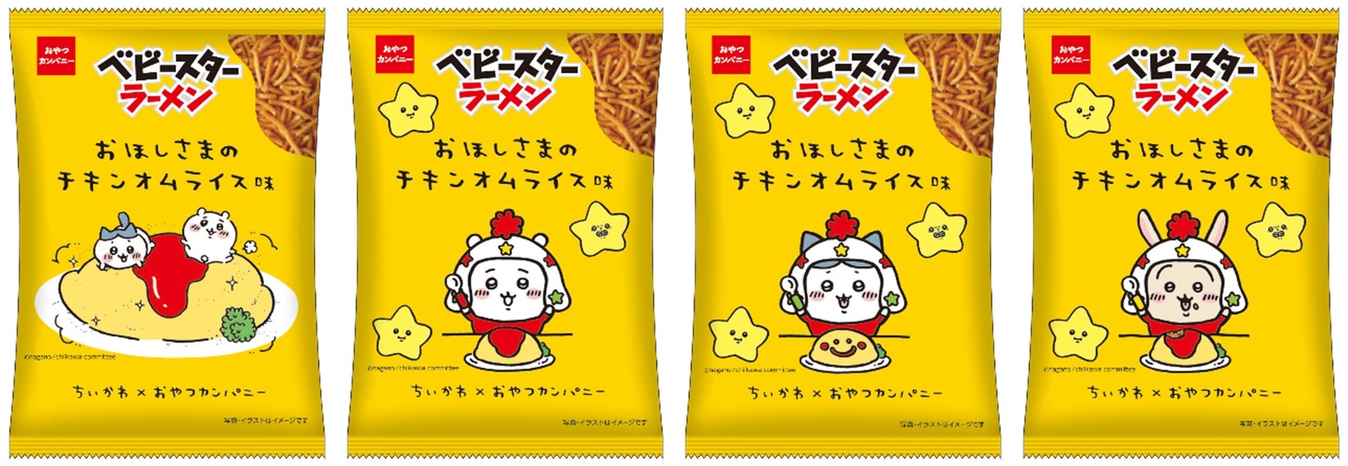 株式会社おやつカンパニーは、Twitter発の大人気作品「ちいかわ」とのコラボ企画として、作品に登場する‟星のお礼のオムライス”をイメージした「ベビースターラーメン(おほしさまのチキンオムライス味)」を、2022年5月30日(月)より全国にて発売!