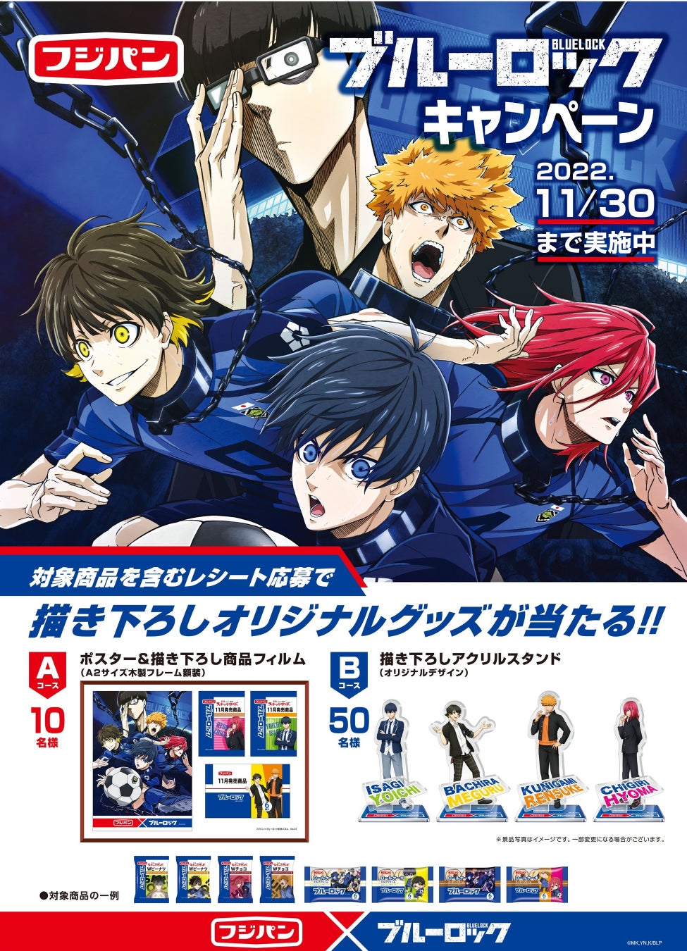 「ブルーロック×フジパン」コラボ!いつ?アクリルスタンド・ポスターが当たるキャンペーン開催!スーパー・ドラッグストアなど
