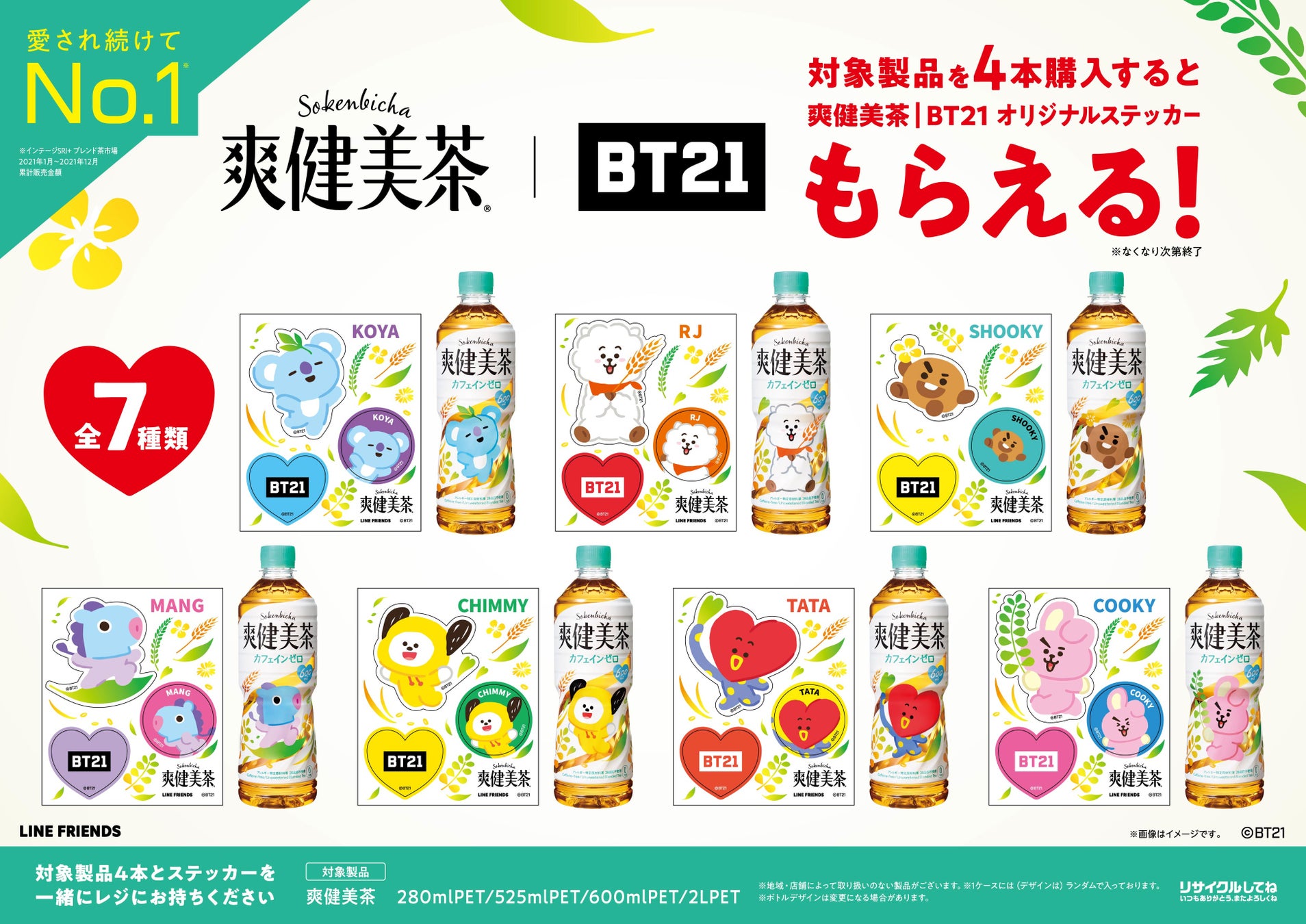 本製品は、体と心のすみずみまで愛を届けるブレンド茶の「爽健美茶」が、グローバル人気キャラクターブランド「BT21」とタッグを組んだ期間限定のパッケージデザインで、コロナ禍で人と人とのつながりが必要とされている時代に、心と体のすみずみまで“愛”をお届け!第2弾の展開にもご期待ください。