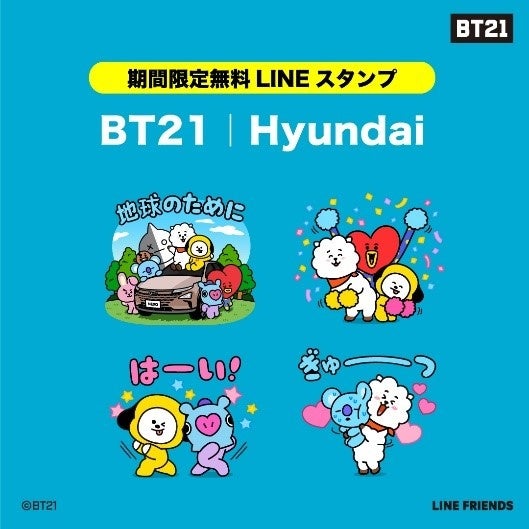 Hyundaiは、環境に配慮したZEVのみを販売し、サステナブルな社会の実現を目指しております。そこで、世界中から愛されているBT21との制作を通じて、Hyundaiのことをより知っていただきたい思いで今回の制作に至りました。今回はBT21初の企業タイアップ期間限定無料LINEスタンプとなります。