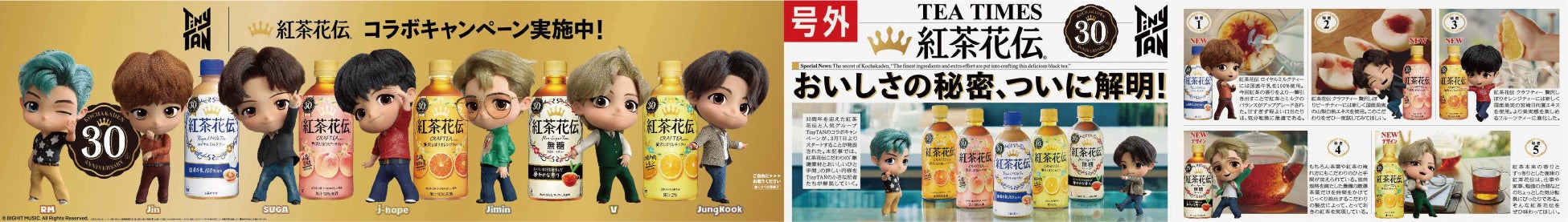 「紅茶花伝」は、リニューアル発売にあわせて3月7日(月)から「紅茶花伝」のおいしさの秘密をニュース形式で発信する新キャンペーンを立ち上げます。これにともない、世界的人気を誇る「BTS」のキャラクター「TinyTAN」は、架空の紅茶専門紙「TEA TIMES」の記者として、「紅茶花伝」の素材や製法へのこだわりを解明し、発信していきます。3月7日(月)には、コラボCMが地上波で1回限り放映され、初めて記者姿となった「TinyTAN」7人のメンバーの取材シーンを楽しむことができます。そのほかにも、さまざまな取り組みが楽しめるコラボキャンペーンが展開される予定です。
