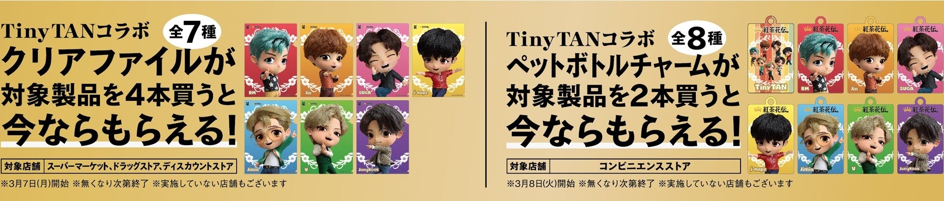 - 「紅茶花伝」をお買い上げいただくと「TinyTAN」との限定コラボアイテムがもらえる